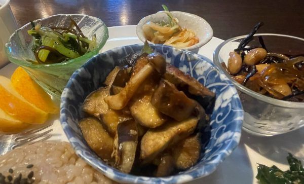 こちらのナスときのこの味噌炒めもおいしかったぁ! ほかの和え物も一つひとつ美味しくいただきました。