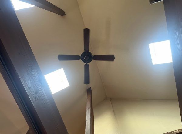 中に入ると、天井は吹き抜けになっていて解放感がありました。シーリングファンもとってもおしゃれです。