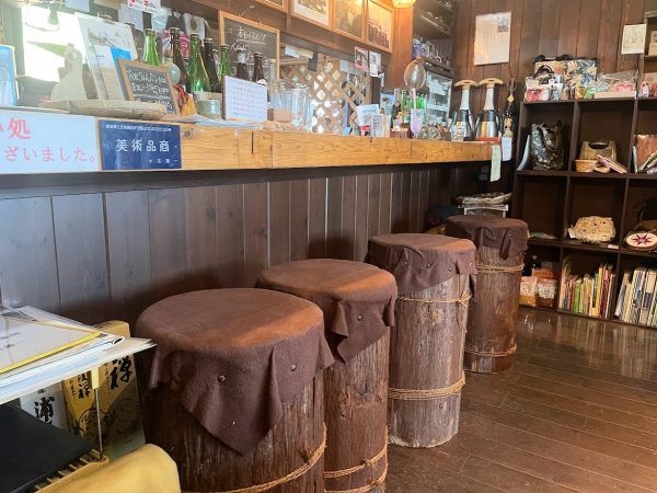 お店の中は4人席の他、カウンター席もありました。お店の名のごとく椅子はキリカブ! まさに木の温もりあふれる空間です。