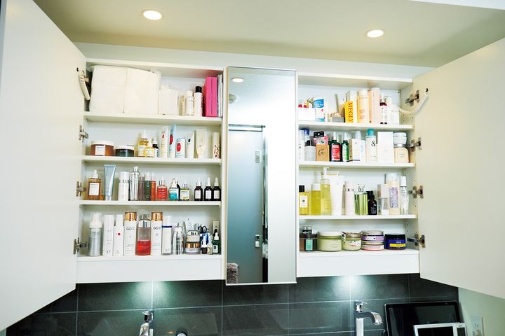 洗面台の上下の棚は用途とブランド別で分けてフル活用