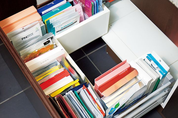 2日おきに使用するシートマスクは、美白やたるみなど用途別に分類。LAVIENとGENiSが使用頻度高め。