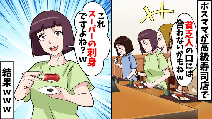 3. 「貧乏人は海鮮丼で十分」マウントをとるボスママ!しかし高級寿司店で赤っ恥をかく衝撃の展開に!?