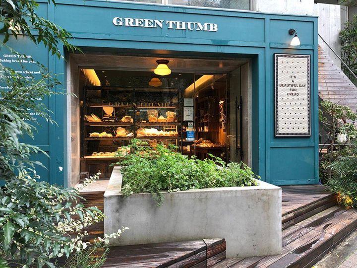 JR渋谷駅の南口から徒歩5分ほど、セルリアンタワー東急ホテル裏手の坂道の途中に、パン好きの間で評判の「GREEN THUMB渋谷店(ぐりーんさむしぶやてん)」があります。