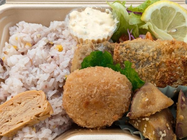 メインの魚は鯛のことが多く、他にホウボウやカワハギの日もあるそうです。またコロッケの代わりにエビフライだったり、おかずは日替わりです。 「若い人にもおいしく魚を食べてほしいです。」と柴田さん。普段は子どものためのお料理教室もされています。