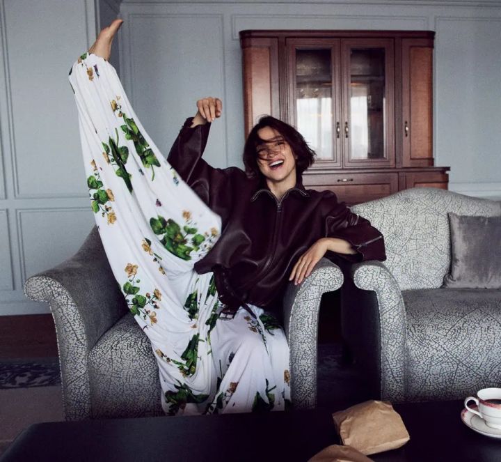 第5位はロエベに身を包んだ中村アンさんのコーディネート。ボタニカルプリントが華やかなパンツはたっぷりとドレープが入った股下の低いデザインがユニーク。トップにもボリュームのあるレザーブルゾンを合わせて、大胆なシルエットのなかにどこか女性らしさも感じるスタイルに。「アンちゃんに似合う」「レザーとパンツ、柔らかな素材感が素敵」といったコメントが見られました。キュートなアンさんに超お似合い♡