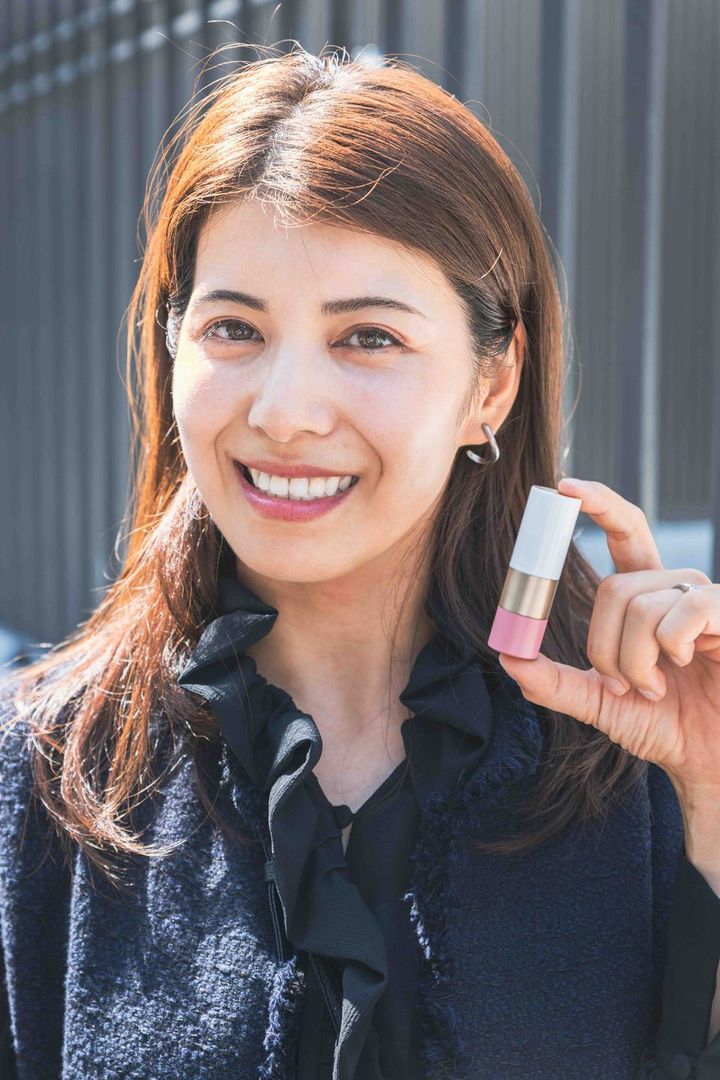 「エルメスのローズ エルメス ローズ ア レーヴルの49番は品のあるほんのりピンク色。美容に詳しい友人からのプレゼントです。リップアート済みなので、上から軽く重ねるだけでメイクが薄い日も血色よく見せてくれます。保湿力も高く、唇がかさつかないところもお気に入りです」石川佑里子さん・33歳(165センチ/9歳と7歳の男の子と3歳の女の子ママ)