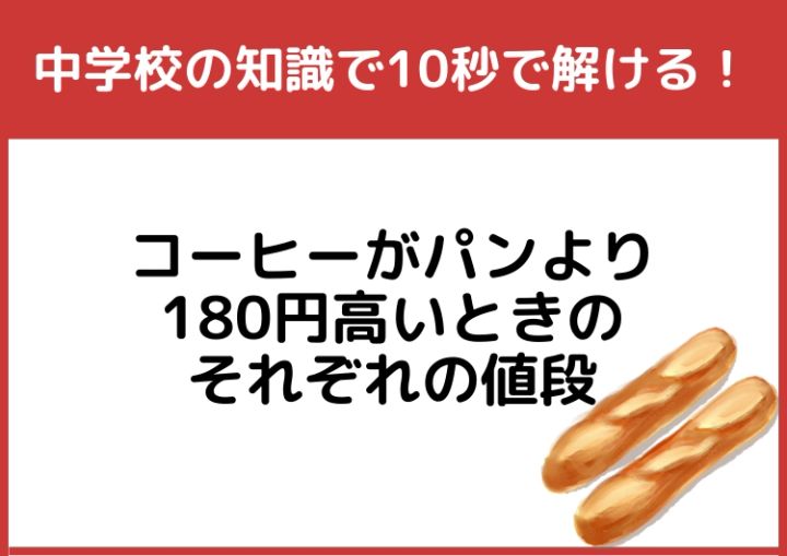 中学生でも答えられるけど実は難しい!「コーヒーがパンより180円高いときのそれぞれの値段」は?