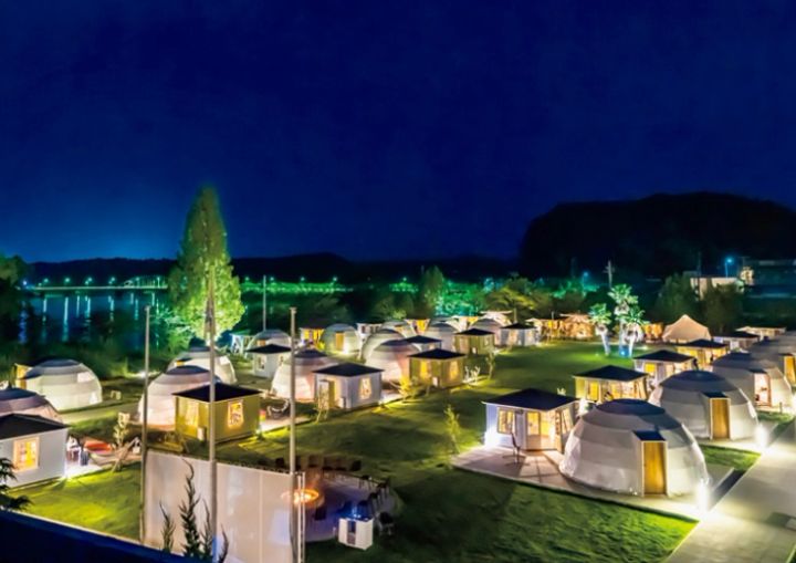 東京から車で約1時間で行けるグランピング施設。駅からは徒歩10分とアクセスも良好。キャンプファイヤーやバレルサウナなどアクティビティも豊富で、非日常を味わえる。部屋にはこたつが完備されているので、まったり過ごしたいカップルにもおすすめです。