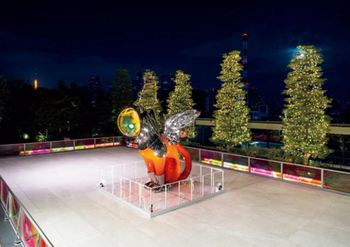 電気を使わない樹脂を使用した、GINZA SIXのエコなスケートリンク。転んでも服がぬれないので、お買い物ついでに気軽に立ち寄れるのも魅力。ヤノベケンジ氏の巨大なアートオブジェとともに、ロマンティックなひとときを。2025年1月26日まで楽しめます♡