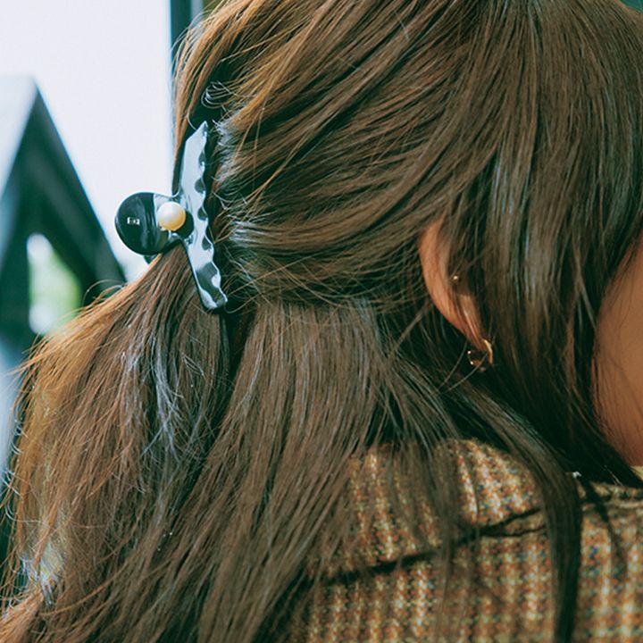 スカート¥27,500(ゲミニー/ウィムガゼット 青山店)ピアス¥26,400ネックレス¥49,500(ともにブランイリス/ブランイリス トーキョー)クリップ¥29,700(アレクサンドル ドゥ パリ/アレクサンドル ドゥ パリ GINZA SIX店)バッグ¥165,000チャーム¥35,200(ともにJ&M デヴィッドソン/J&M デヴィッドソン カスタマーセンター)シューズ¥79,200(ペリーコ/アマン)ストッキング スタイリスト私物、その他 本人私物