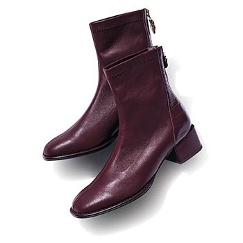 型押しドッキングブーツ(4)/卑弥呼 シープストレッチ素材のレザーボディと太ヒールでストレスなく長く履ける。かかと部分はクロコの型押しでひかえめなアクセント。