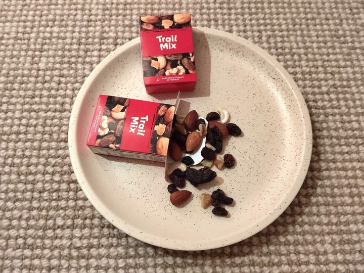 あまりの安さに期待していなかったのですが、箱を開けてみたらドライフルーツとナッツがどっさり。ちょっと摘まむには1箱で十分な量。ほんのりと塩味はついていますが、自然の食材そのものを感じるナチュラルな味わい。