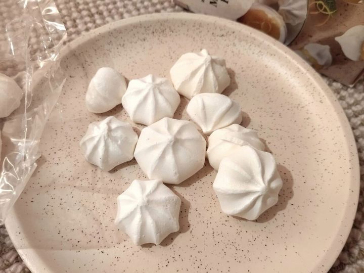 大パッケージなのでバラまき土産には向きませんが、可愛らしいホイップフォルムのメレンゲがたくさん入っています。