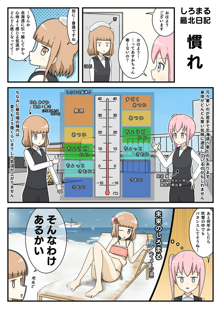 道北民「気温がマイナスだと”ちょっと”寒い」あなたの”寒い”は何度から?|しろまる最北日記vol,42【漫画】
