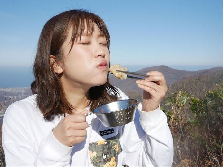 3. 「うまーい!最高!」肉汁のダムにダイブ!北海道の山頂でシュウマイ蒸してみた