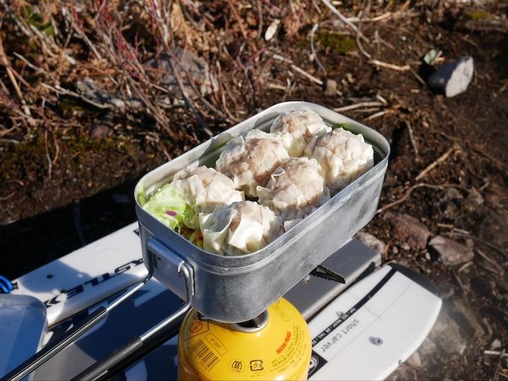 過去にコンビニの肉まんを蒸したこともあるのですが、それも忘れられない「神・山ごはん」です。