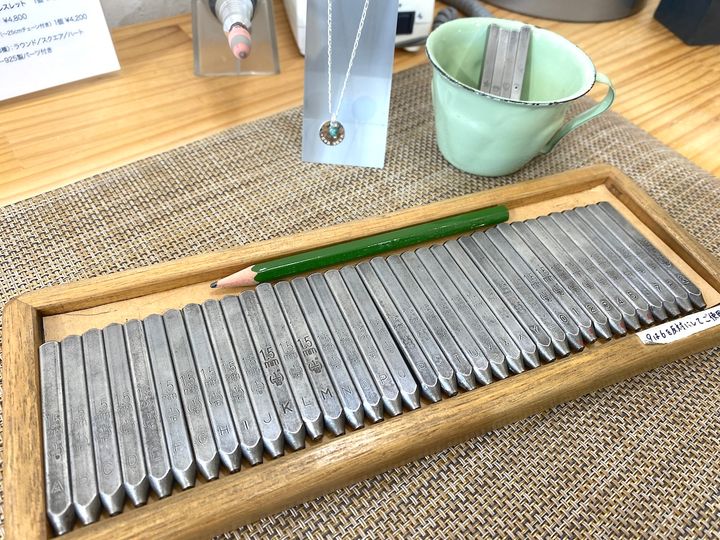 「a.w.s清澄白河店」では、オプションを追加することでアイテムをさらに魅力的に仕上げることができます。オプションはさまざまで、表面を凸凹に仕上げる「つち目加工」200〜500円(リングは300円)、表面をマットに仕上げる「つや消し加工」100円、刻印部分を黒色にする「いぶし加工」100円などがあります。せっかくなので、「つち目加工」にチャレンジしてみました。