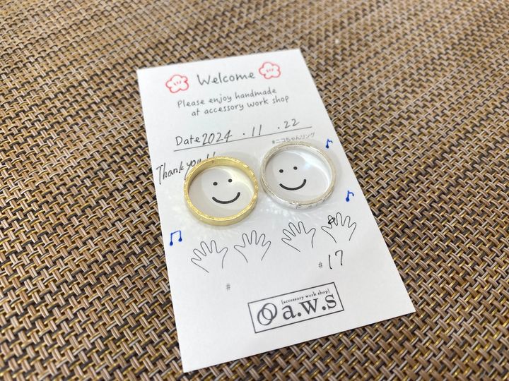 そして完成!練習に使用したリングももらえるので、使ったり、おうちに飾ったりして楽しんでみて。最後にリングの保存方法や注意事項などを聞いたらレッスンは終了です。