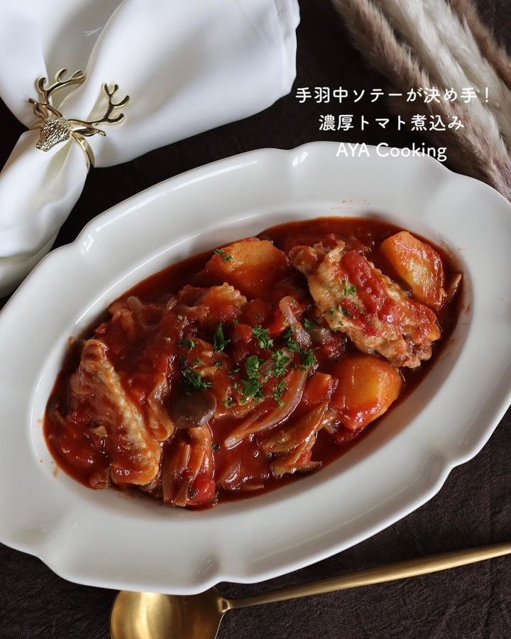 手羽中ソテーが決め手!濃厚トマト煮込み
