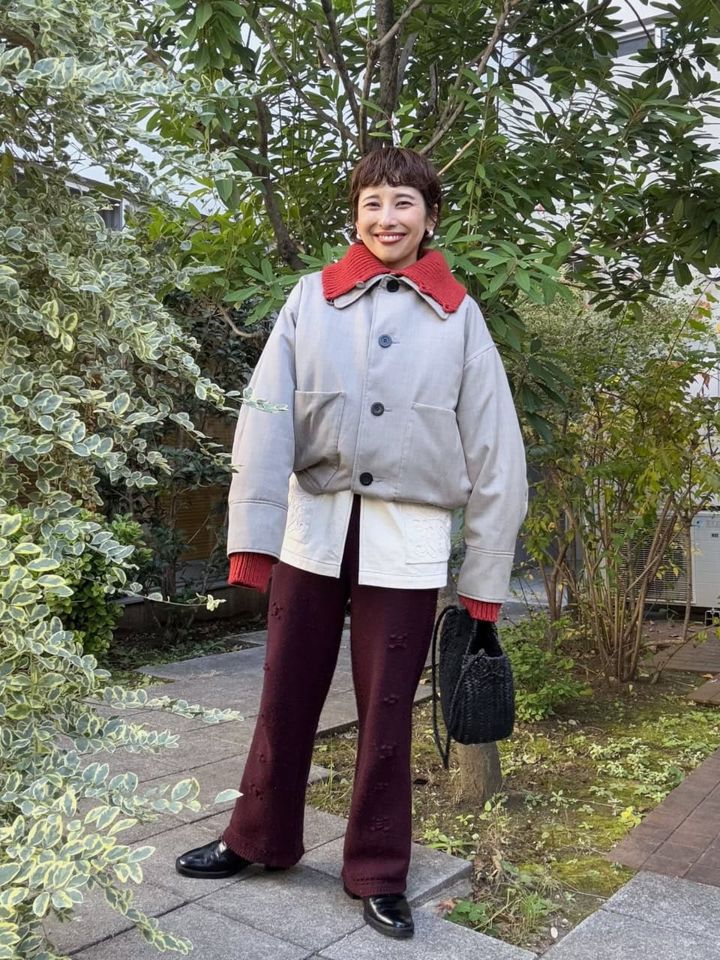 綿入りショート丈コートにニットとベストの上級者重ね着テク!【365日スナップ】郡司杏さん