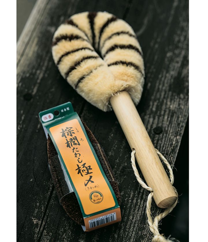 ボディ用の亀の子たわし「タムラさん」はお風呂の時に水分を含ませてボディをなでます。リンパマッサージのようで気持ちいいんです。