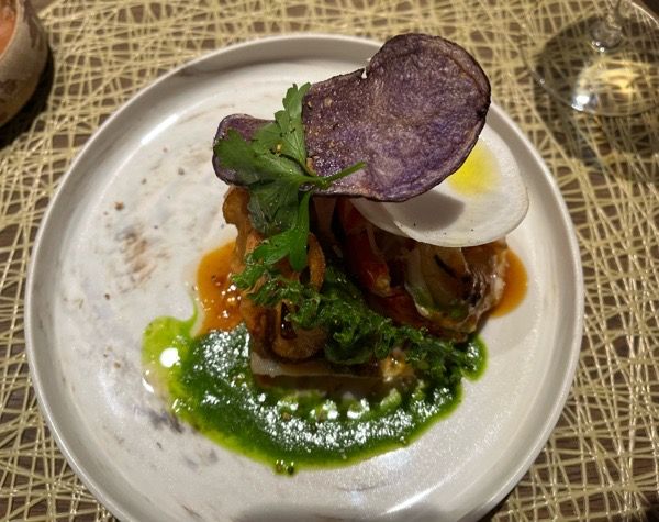 一皿一皿スタッフの方が説明してくださるのですが、パッと見だと何が隠れているかわからないのでわくわく感があります。きれいな色の野菜の下にお魚が潜んでいたり、アツアツパイの中からジュワッと子羊肉が出てきたり。普段見慣れない野菜も味わうことができて、とても楽しかったです。