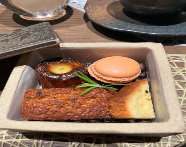 そして珈琲とともにプティフールが!このプティフールうれしいですよね。可愛い小箱に入ったマカロンや焼き菓子たち。こちらはお持ち帰りができるもので、もうお腹いっぱいの私は迷わず包んでいただきました。この気遣いがうれしいです。