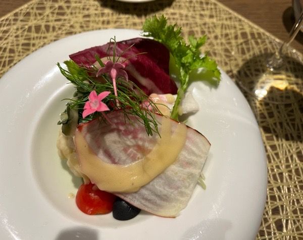 野菜が新鮮で多く使われているので、フレンチ特有の重さは感じず、濃厚な味とさわやかな味の調和、そして食感も楽しめました。