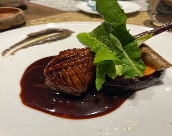 こっくりとした濃厚なソースの柔らかな鴨肉。美味しい。赤ワイン(ピノノワールをセレクト)とともに、味わいました。