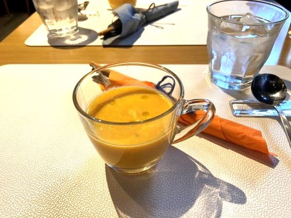 まずはニンジンのポタージュ。寒い日だったので、やさしいポタージュであたたまる~♪