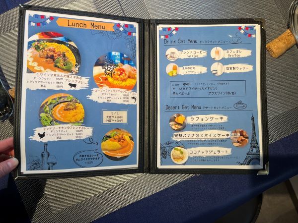 ランチタイムにお邪魔しましたので、3種類のカレーから選びます。 どのメニューも写真がとてもきれいでかなり悩みましたが、ガーリックシュリンプが気になりましたのでガーリックシュリンプのフレンチカレーのドリンク付きにしてラッシーもお願いしました!