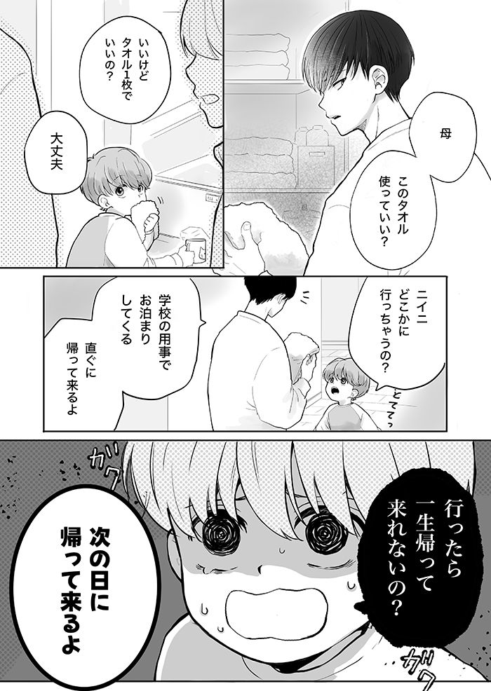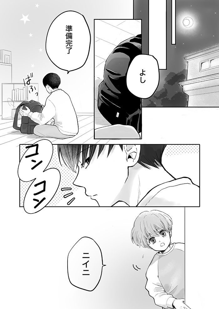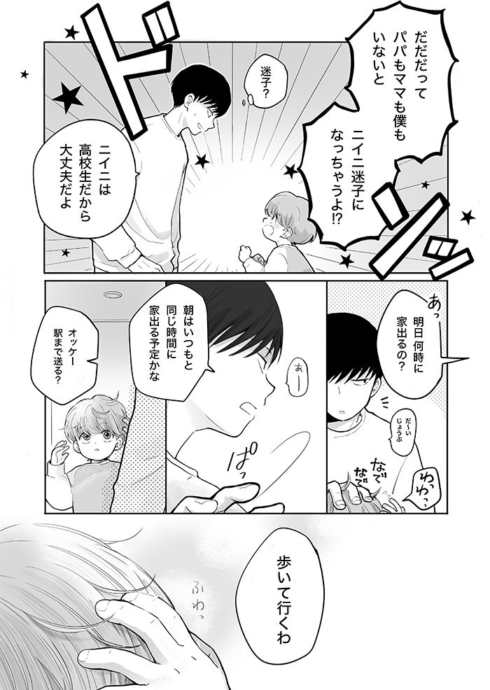10歳差兄弟のニイニとオトト君。16歳のニイニは弟思いの優しいお兄ちゃんだけど、思春期まっただなかの高校生でもあり……。今回は、お泊まりに行くニイニを心配するオトトくんです。