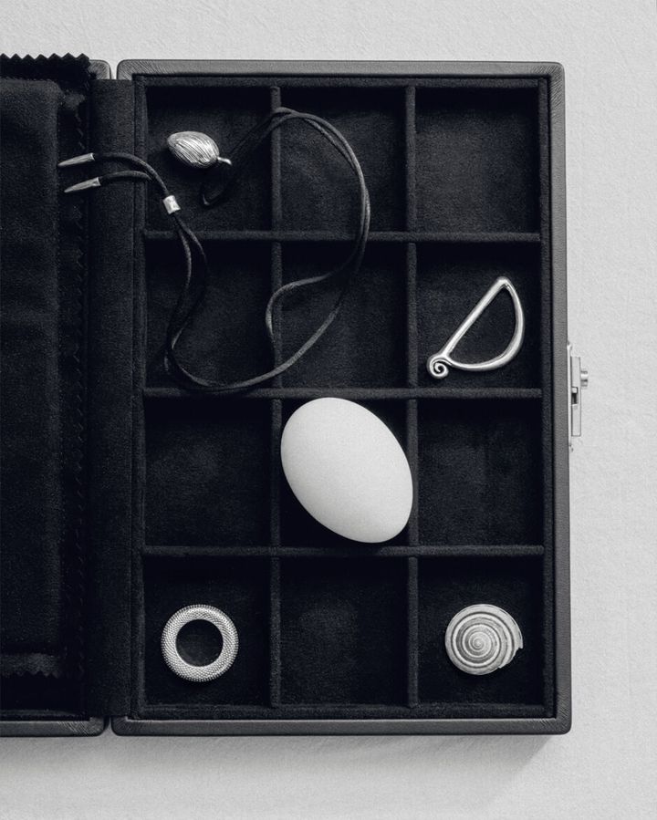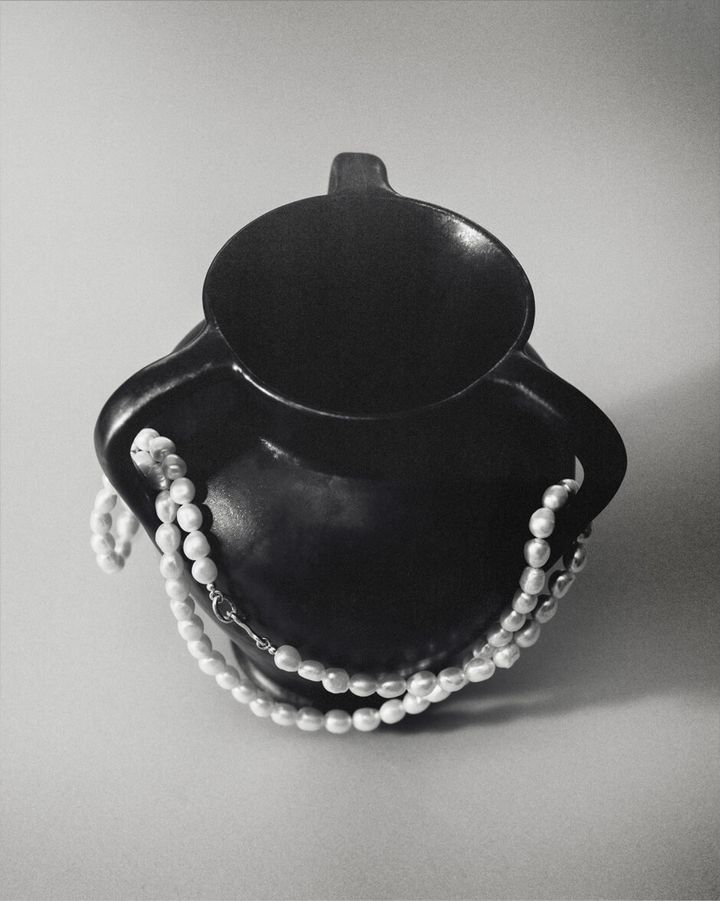 necklace, rings and earrings by R.ALAGAN, pottery and vintage vase by GEFÜHL KLEVERIG, glass stylist’s own