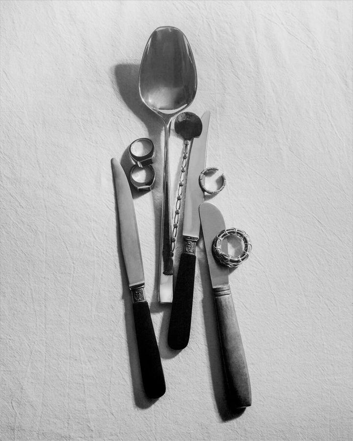 rings by R.ALAGAN, vintage pottery by GEFÜHL KLEVERIG, spoon stylist’s own