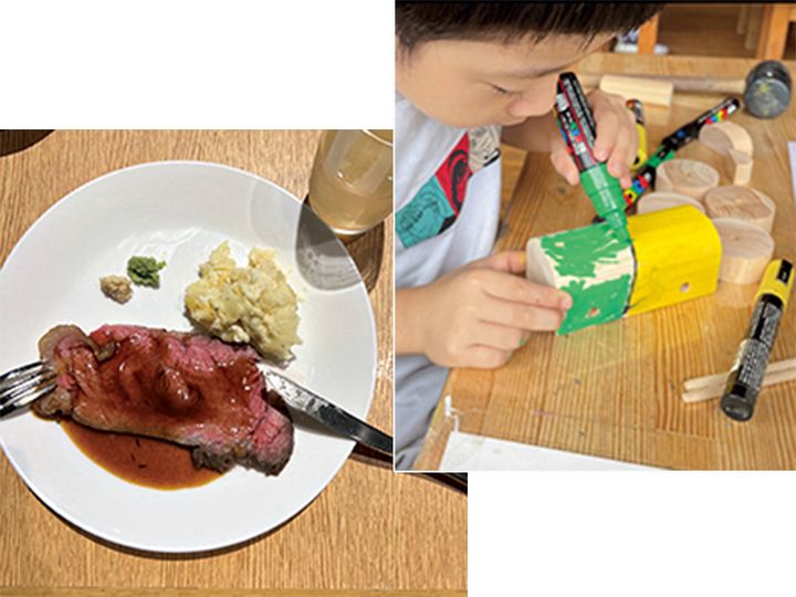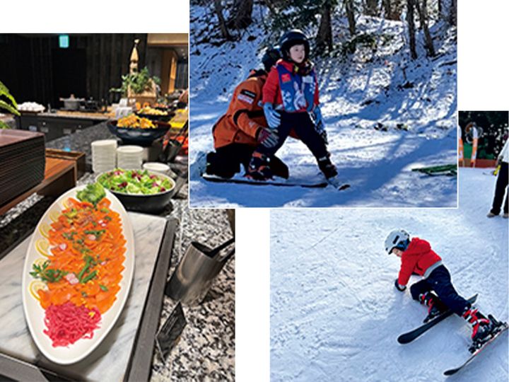 「3連休を使って金曜夜、保育園と仕事が終わってから新幹線で出発。朝はレンタルした後、息子はスキースクールに入るので、3日間ともホテル敷地内にあるコンビニで買って簡単にお部屋朝食に。スキー初日、午後天候が悪くなってきたので、ホテル内の「ネイチャーキッズ森の家」に。室内プログラムもあって、息子は木材を使った工作が楽しかったよう。夕食はホテルのビュッフェと中国料理を選択。実は私、ビュッフェに懐疑的だったのですが、どれもクオリティが高く、ママ友たちが“ここはすごいから!”とイチオシだった理由がよくわかりました。息子のスキーは2日間のスクールでかなり上達。最終的には長いコースにもトライするほどで、付き合う親のほうがクタクタに(笑)」※温泉利用はコテージ宿泊の場合、有料