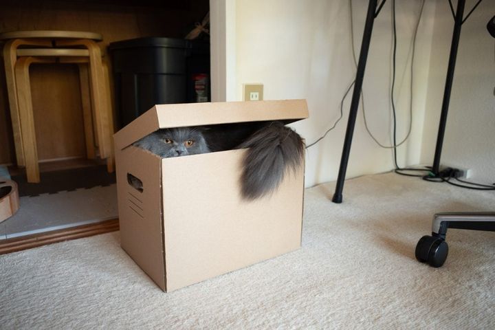 箱の中に隠れて、こっちをのぞいているねこ。実は、このねこ、すごい力をもっている超能力ねこなんだにゃ。その力とはいったい……??