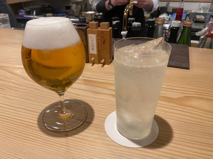 すっきりとした味わいでレモンの酸味がしっかりあってとても美味しい!(…外でお酒を頂く時に薄いグラスだと私は気持ちが上がるので、素敵なグラスで頂けるの嬉しい♡)