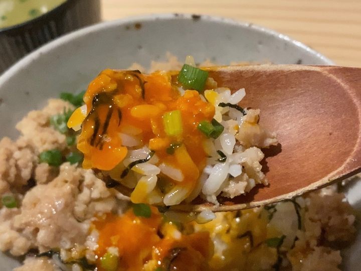 いままで食べたそぼろ丼の中で1番美味しかった………濃厚な卵が優しい味付けの鶏そぼろと絡んで口の中が幸せいっぱいになりました♡