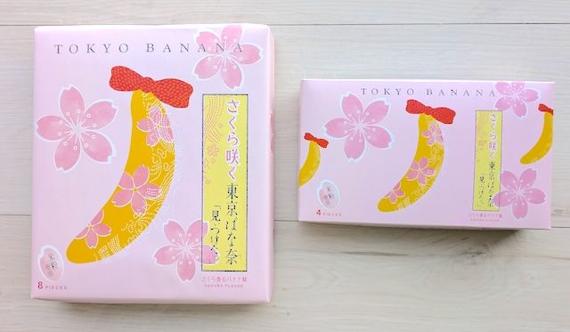 『さくら咲く東京ばな奈「見ぃつけたっ」 さくら香るバナナ味』4個入(右)、12個入(左)【販売期間】2024年12月16日(月)~2025年4月15日(火)頃まで※8個入は通年で販売中です。【販売店舗】東京ばな奈スタジオ 1F-STUDIO 大丸東京店/東京ばな奈s(JR東京駅 八重洲地下中央改札外)【メッセージ欄】なし