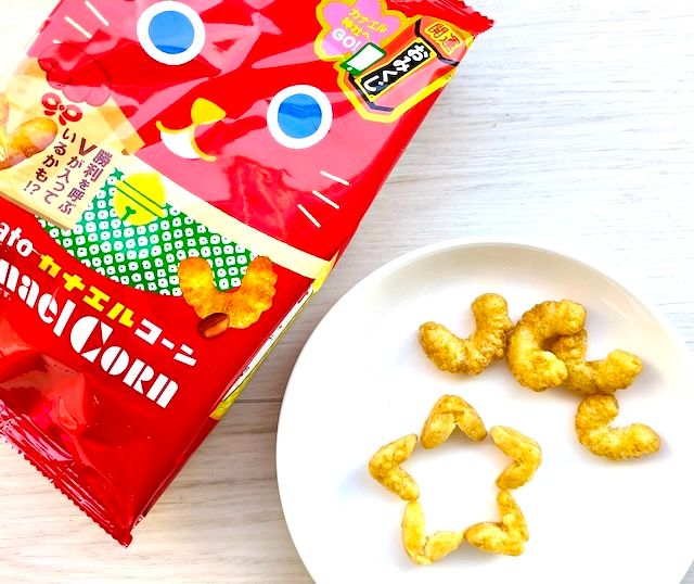 キャラメルコーンのパッケージがまねき猫になった『カナエルコーン』。