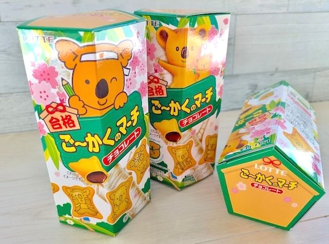 コアラは寝ても木から落ちないことから合格祈願のお菓子の定番となっている「コアラのマーチ」。普段は六角柱のパッケージですが、今だけ五角(合格)柱となって、オンラインショップ限定の完全受注生産で販売。