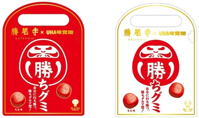 源氏や足利氏などの歴代の武将も勝運祈願に訪れたといわれている、大阪府箕面市にある「勝尾寺」とUHA味覚糖がコラボした『勝ちグミ』。「七転び八起き」の精神を持つ勝尾寺の「勝ちダルマ」を、グミで再現しています。1月ごろまでの受験シーズン限定商品となりますが、勝尾寺では通年販売されているのだそう。