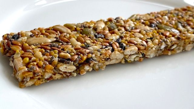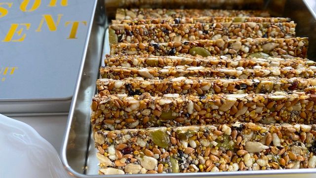 日本限定商品「バー・セレアル」。カボチャの種、ヒマワリの種、ヘンプシード、アマニの実、ライスパフなど8種類もの穀物と種をハチミツで固め、日本のおこしのような雰囲気もあり、ザクザクとプチプチという独特の食感を楽しめます。小麦粉・乳製品不使用なので、ヘルシースイーツの贈り物にもぴったり。