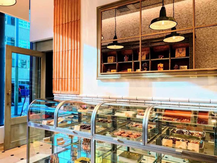 併設の専⾨⼯房では朝からひっきりなしにお菓子が焼かれているので、お店に入った瞬間から香ばしい香りとお隣のショコラのいい香りが包み込んでくれます。