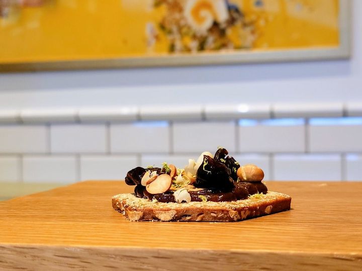 プルーンとライムがフルーティーで、香ばしい大豆とのタッグが未知なるビスキュイの世界へと誘ってくれました。味わいを立体的に楽しめる特別感あふれるスイーツです。