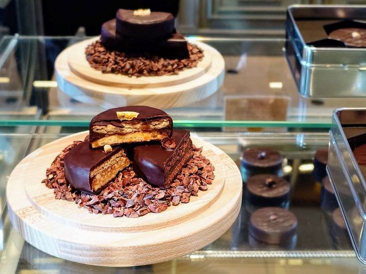 人気第4位は「パレ」。第2位の「パレ・ファン」の薄いビスキュイ2枚の間にガナッシュやプラリネなどを挟み、「ル・ショコラ・アラン・デュカス」のショコラでコーティングしています。
