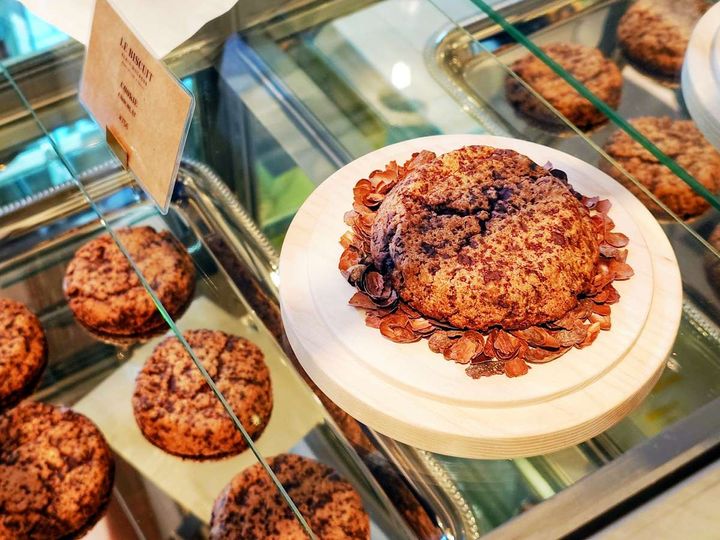 東京工房ブティック限定「クッキー・ショコラ」。カナダ出身のパリ本店シェフが“子供の頃の味”を再現したアメリカンサイズのクッキーです。焼きたてをテイクアウトできます。