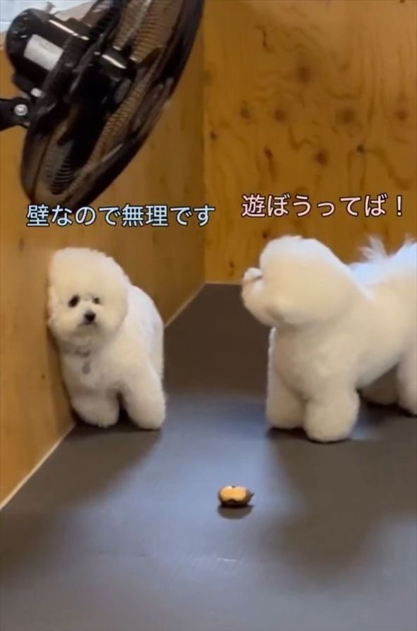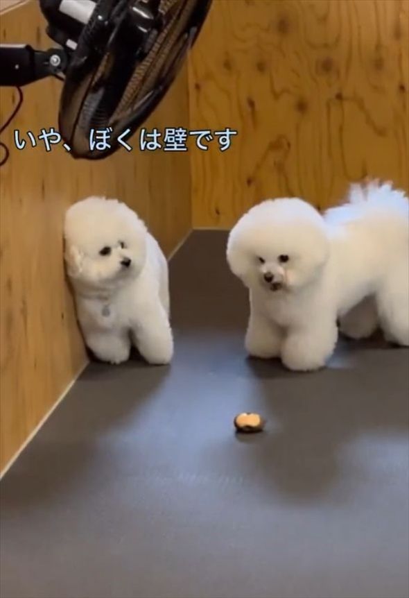 3. ビションフリーゼが壁になりきっている?「遊ぼ!」アピールを拒む姿が話題に