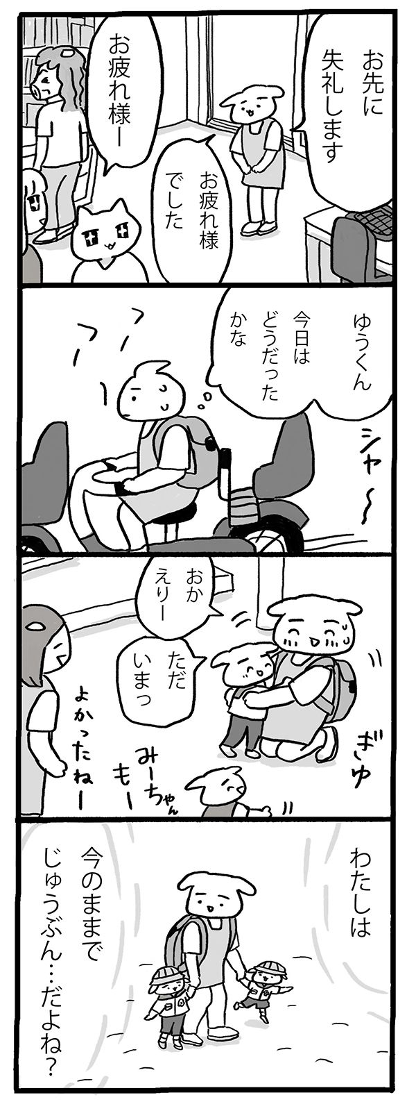 第5回 マママンガ賞、期待賞受賞のしのざきあゆみさんによる連載。仕事と家族の間で迷いながら、自分のやりたいことを探っていく、イヌミヤさんのお話です。