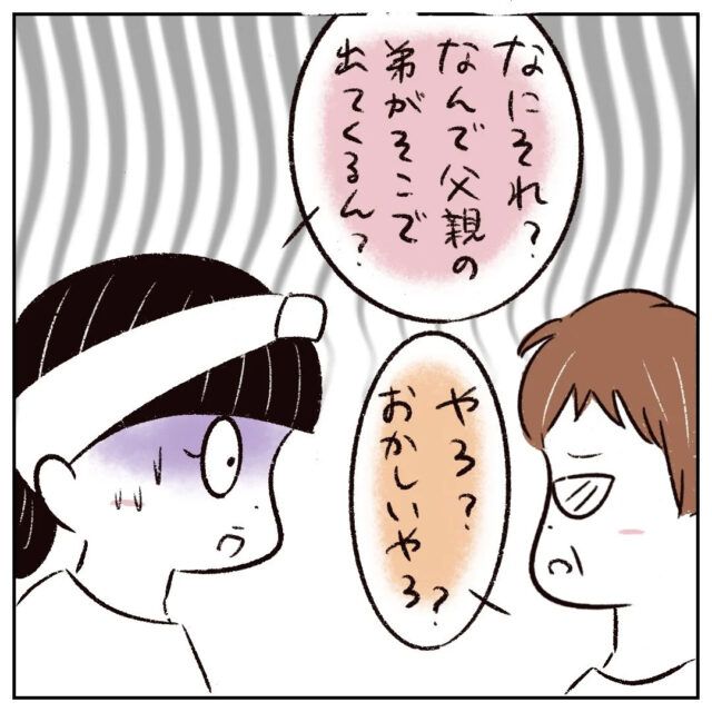「なにそれ?なんで父親の弟がそこで出てくるん?」「やろ?おかしいやろ?」さなかちゃんの父親の発言に理解に苦しむまるさんとお母さん。